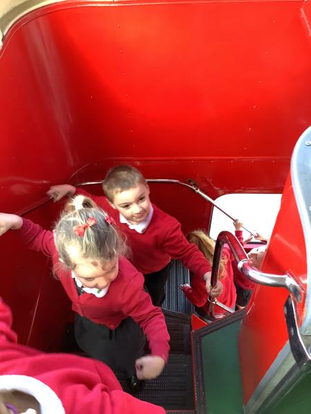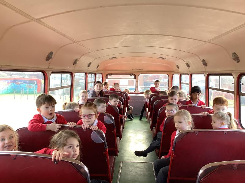 This week we had a very exciting visit from a 66-year-old, double decker bus! The Nursery children had a wonderful time singing 'The Wheels on the bus' song, whilst one child sat in the driving seat and beeped the horn in time. Then, we all climbed the very steep steps to sit on the top deck and this was quite a challenge for little legs! We would like to say a HUGE thank you to Grayson's parents and the staff at St Helens Transport Museum for arranging this experience for us.