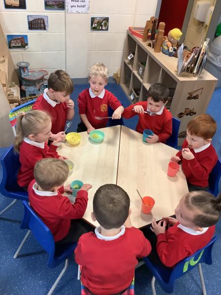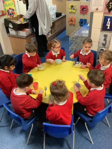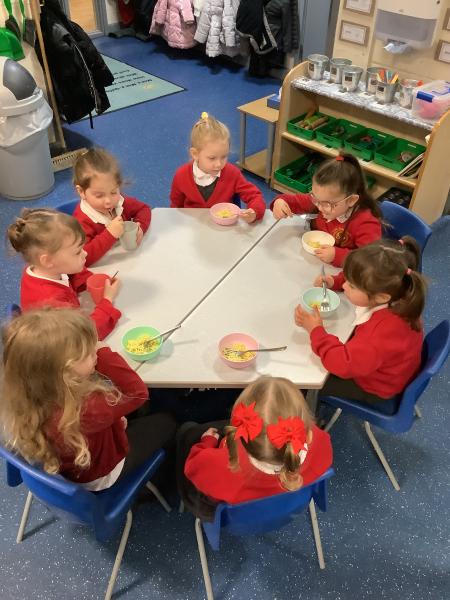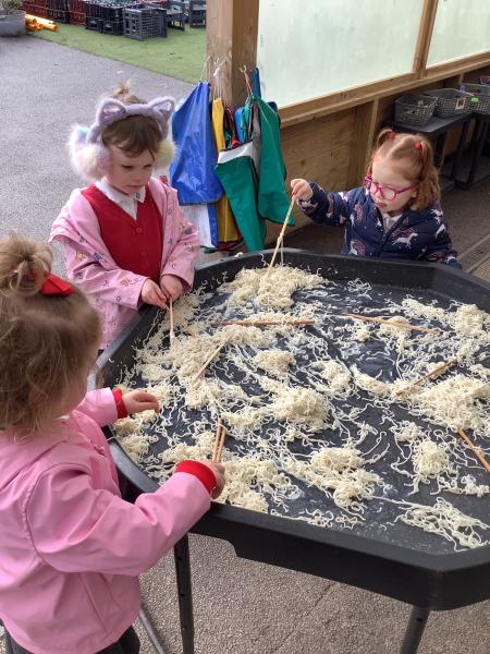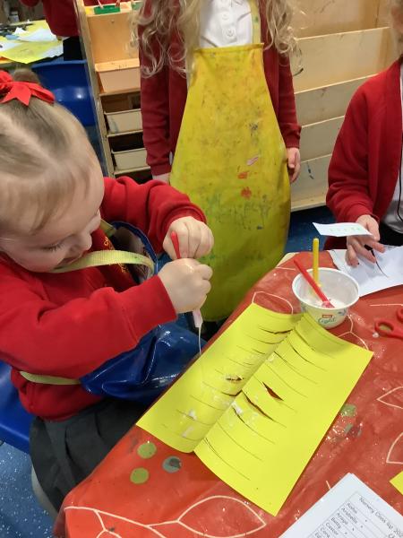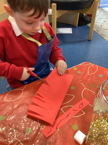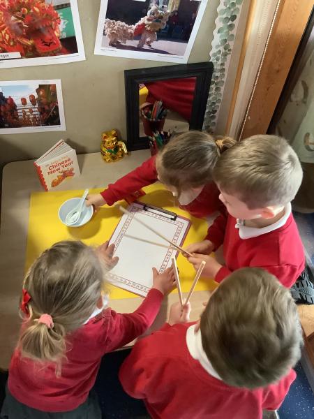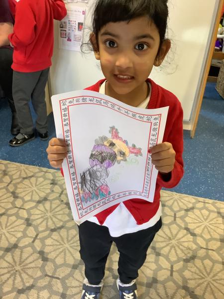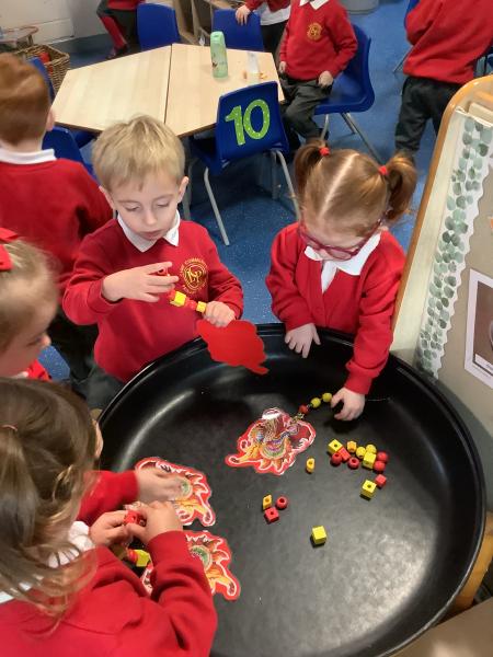 Nursery class had fun celebrating Chinese New Year. We watched a short video before looking at lots of interesting Chinese artefacts. Then, the children tucked into a bowl of yummy noodles for snack and oranges. They were able to further explore some noodles in the tough tray outside, using real chopsticks! Inside, the children threaded red and yellow beads onto a dragon's tongue. Red and yellow are thought to be lucky colours. We then shared a book all about Chinese New Year and watched an amazing dragon dance. Some children even drew their own dragon pictures independently. We made our own Chinese lanterns and practised our cutting skills using scissors. It was challenging to cut along straight lines! Finally, we learned how to say Kung Hei Fat Choi and took home a special fortune cookie each.