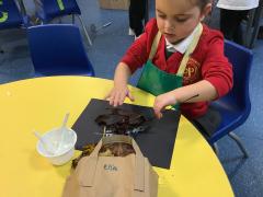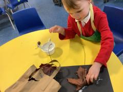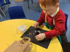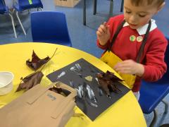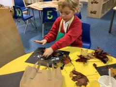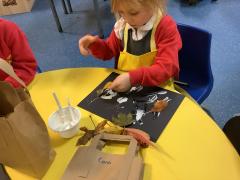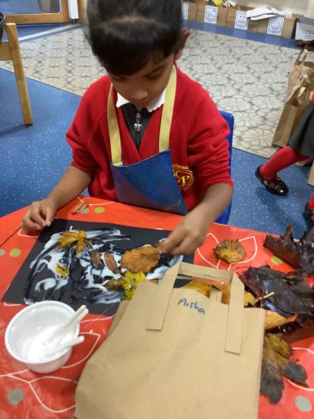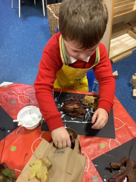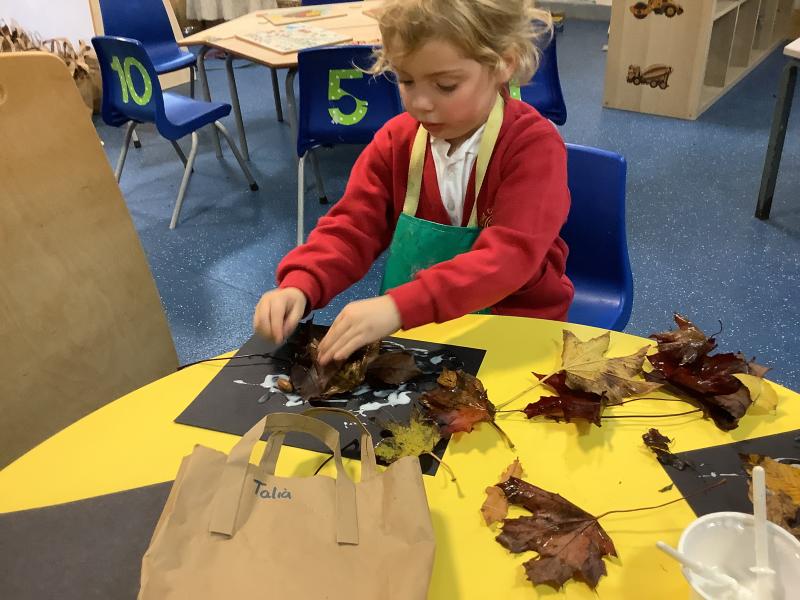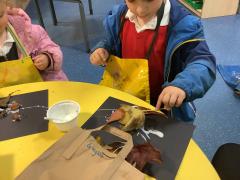 This week, Nursery put on our wellies and went on an Autumn walk around the school woodlands. We had such a fun time noticing signs of Autumn and ticking them off on our sheet. The children collected their own items of interest and once back in Nursery, they created their own collage pictures.
