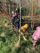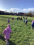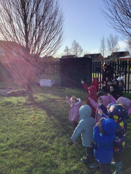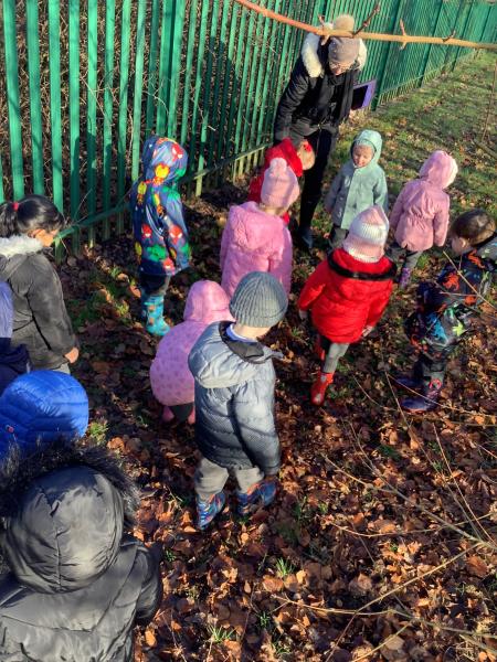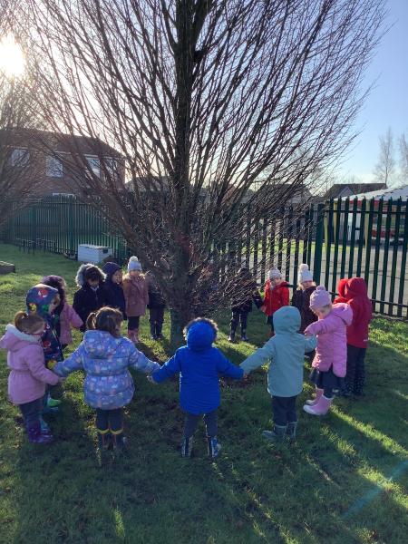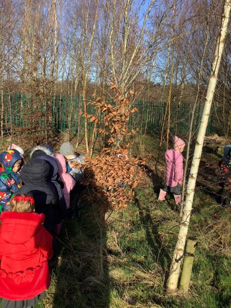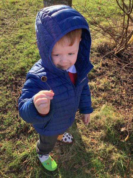 Today, Nursery had a wonderful Winter walk. We noticed the trees were bare now, compared to our Autumn walk, and the berries had all been eaten by the birds. We even heard some birds singing. The children enjoyed walking through the woodlands and eventually spotted a fir tree along the way. We compared deciduous and evergreen trees, and spotted new buds and even some catkins hanging on the bracnches. The children felt the grass and realised that the frost had now melted into water, due to the warmth from the wintery sun. We discussed the leaves on the ground and talked about how they squash down to make rich soil to feed the trees. To help with this process we stomped our feet as we walked through the wet, soggy leaves. Finally, we ran back across the field towards the gate. What a fun time we all had!