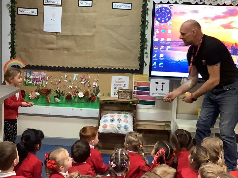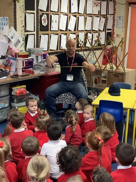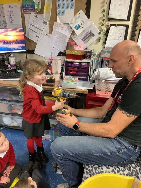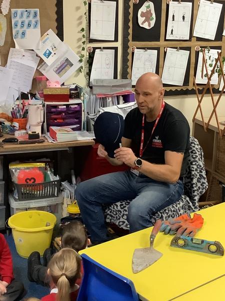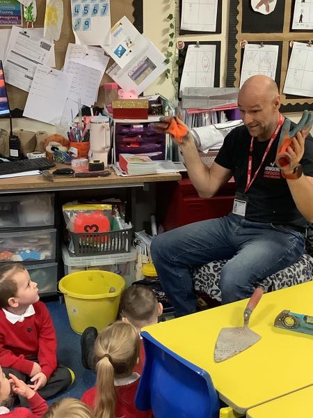 This week, we had a very special visitor to EYFS. Phill the builder came to show us some of his different tools, safety gear and to talk to us about his job. He allowed the children to hold some of the items he brought and he explained how his job is either to build or to fix. It was very interesting, informative and fun, and at the end of the session we asked him our own questions. Thank you Phill for coming to visit us!